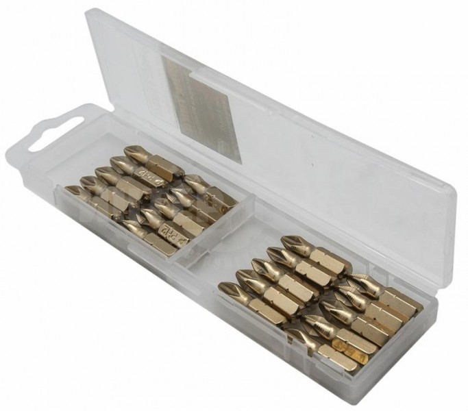 Бита РН2 25мм ПРАКТИКА серии «Эксперт» идеально подходят для профессионального применения. Улучшенная геометрия позволяет наиболее четко фиксировать насадку в шлице самореза, сводя до минимума вероятность срыва, что существенно увеличивает ресурс насадки и не повреждает шлицы и поверхность материала. Дополнительно для улучшения сцепления со шлицом при закручивании длинных саморезов на рабочую часть насадки нанесены специальные насечки (ACR) увеличивающие поверхность сцепления. Специальная хромванадиймолибденовая сталь (CrVMo) и температурная обработка токами высокой частоты (ТВЧ) обеспечивают наибольшую поверхностную твердость 60-61 HRC в сочетании с достаточной вязкостью острия насадки, что полностью исключает, как единовременное сворачивание насадки, так и ее излом. Покрытие нитридом титана (TiN) обеспечивает дополнительное упрочнение поверхности рабочей части насадки. Магнитные свойства позволяют удерживать саморез в любом удобном положении.