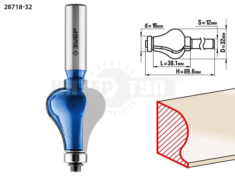 Фреза кромочная фигурная №7 D= 32мм рабочая длина-38,1мм хв.-12мм d-16мм ЗУБР Профессионал