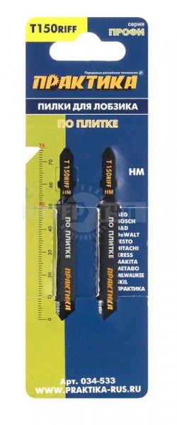 Назначение пилки по плитке Рабочая длина 50 Количество в комплекте 2 Тип пилки T150RIFF Пилки из высокоуглеродистой стали. Твердосплавное покрытие ТМ. Зернистость 50 (средняя).