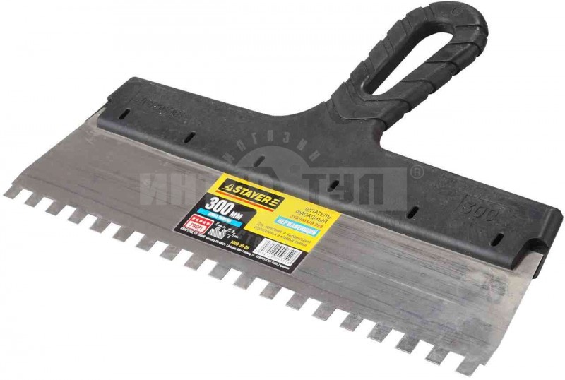 Шпатель зубчатый 300мм зуб8х8мм нерж Stayer