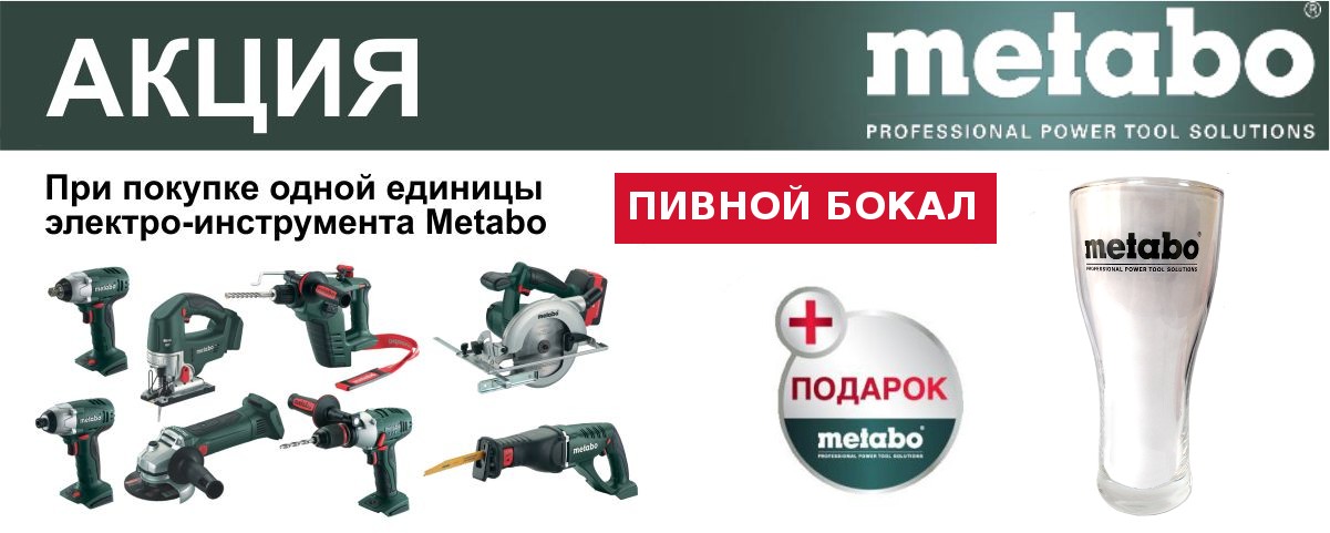 При покупке одной единицы электроинструмента Metabo дарим подарок, пивной бокал Metabo!