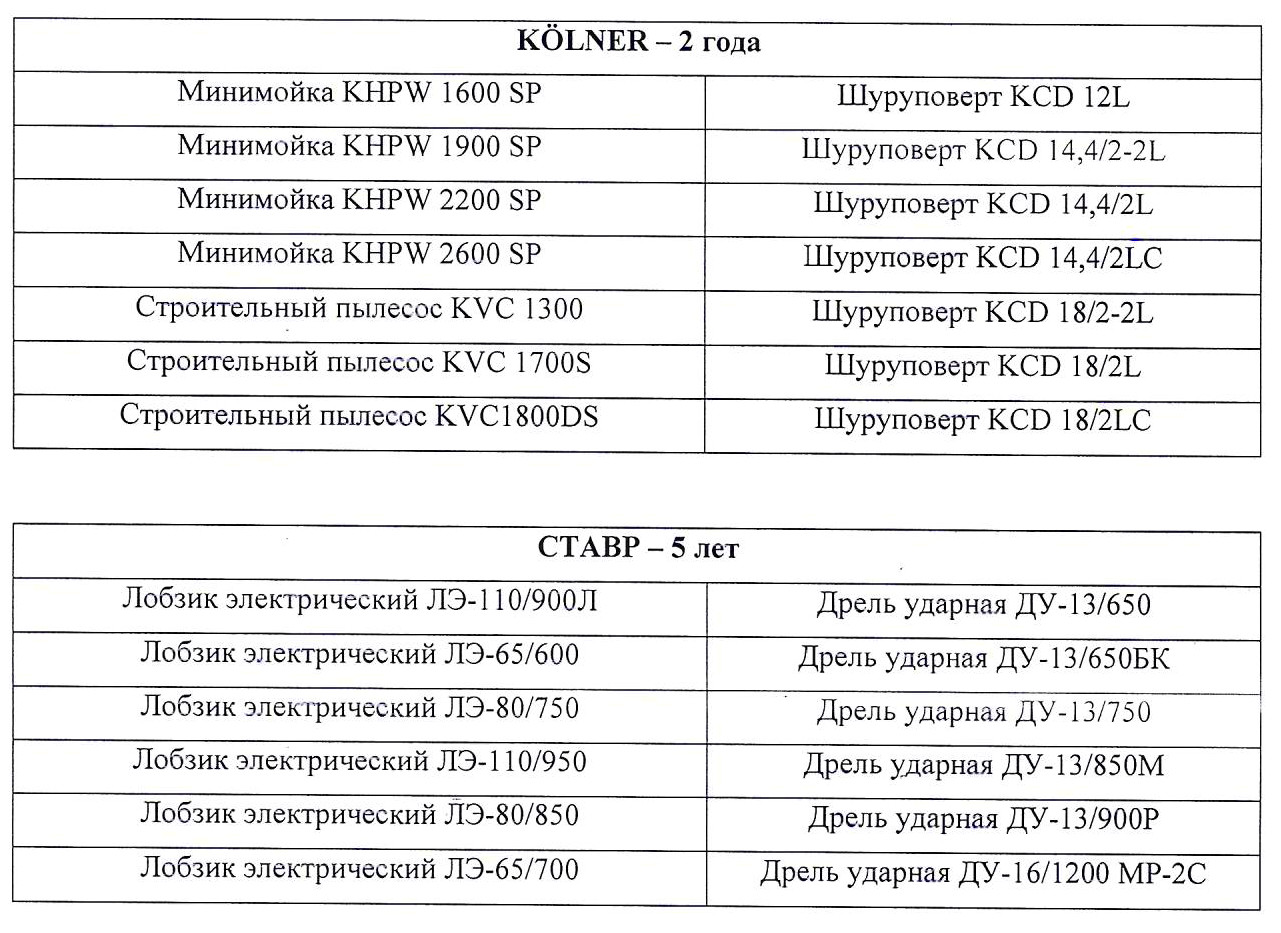Увеличился срок гарантии на некоторые позиции под брендами СТАВР и KOLNER.