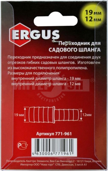 Адаптер д/шлангов соединитШлангов 19-12мм пласт QE