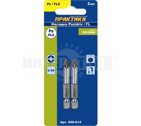 Бита отверточная ПРАКТИКА "Профи" PZ/FL2 х 50мм (2шт) для электротехнических работ