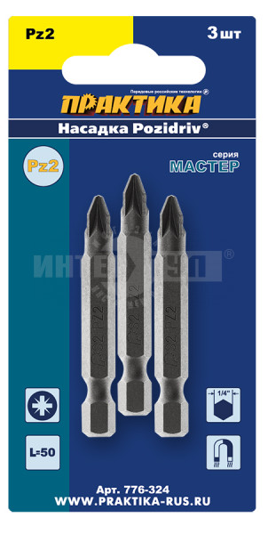 Биты ПРАКТИКА "Мастер" PZ2 50мм (3шт в упаковке) предназначены для профессионального использования. Изготовлены из легированной хромванадиевой стали (CrV-S2) с поверхностным упрочнением до твердости 58-59 HRC токами высокой частоты (ТВЧ). Имеют проточенную головную часть для работы в узких местах. Точная форма рабочей части обеспечивает идеальную фиксацию в шлицах самореза. Боковая поверхность отполирована. Магнитные свойства позволяют удерживать саморез в любом удобном положении.