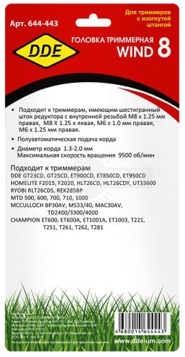Головка тримм DDE Wind 8 полуавт М8х1.25мм прав +М6х1.25мм прав +М6х1.0мм прав