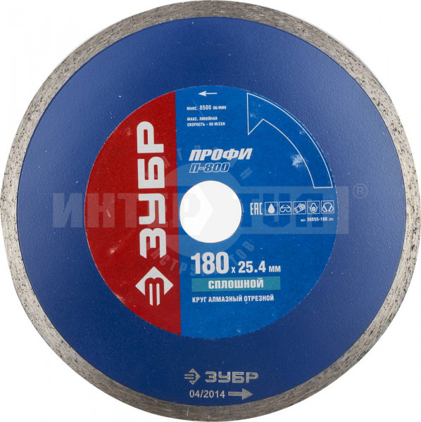 Исключительно высокий уровень качества профессиональных отрезных алмазных кругов ЗУБР серии ПРОФЕССИОНАЛ гарантирован комплексной системой контроля всего производственного процесса. Применяются на электроплиткорезах для резки керамогранита, мрамора при обязательном водяном охлаждении.