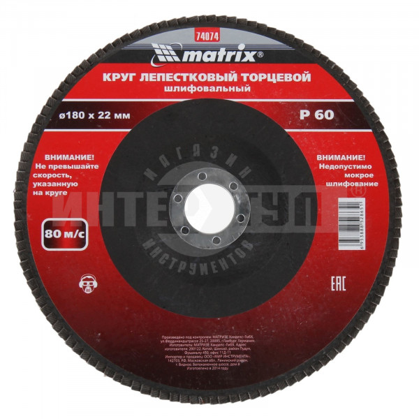• Круг лепестковый торцевой изготовлен из прямоугольных элементов шлифовальной шкурки на тканевой основе, которые расположены в виде веера на подложке из стекловолокна.