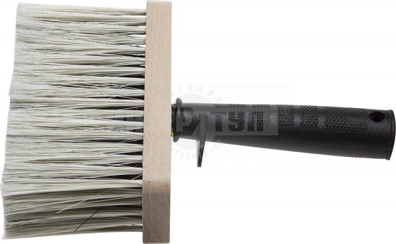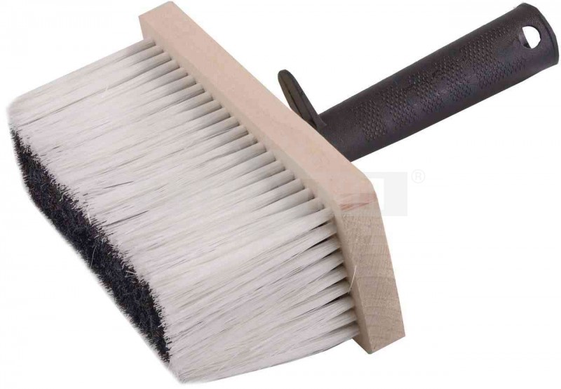 Кисть макловица предназначена для размывки потолков, грунтовки и побелки больших поверхностей. Двухцветная (белая и черная) искусственная щетина. Деревянный корпус. Пластмассовая ручка с отверстием для подвески и креплением на ведро.