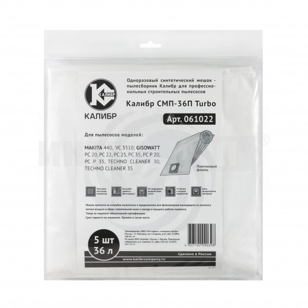 Мешки д/пылесоса Калибр 36л