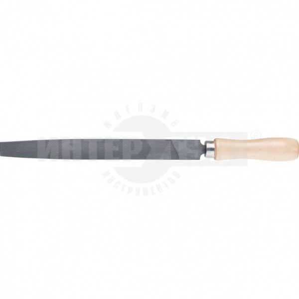 Напильник предназначен для качественной обработки плоских поверхностей твердых материалов. Инструмент имеет двойную перекрестную насечку №2. Ширина плоской части напильника уменьшается от середины к носу. Напильник изготовлен из углеродистой стали. Поставляется в комплекте с деревянной рукояткой, покрытой бесцветным лаком, который защищает древесину от рассыхания и набухания.