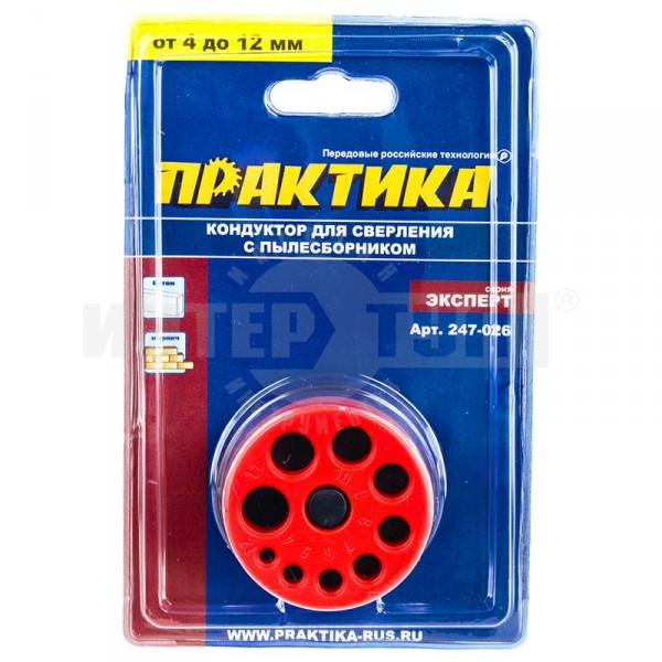 Кондуктор с пылесборником Практика 247-026 предназначен для аккуратного сверления различных материалов с помощью спиральных сверл и буров диаметрами 4,5,6,7,8,9,10 мм. Кондуктор имеет специальный резиновый обод для сбора пыли и стружки из отверстия. Наиболее удобен при выполнении работ в уже отделанных помещениях при сверлении вертикальных, наклонных поверхностей стен, а также потолков. Серия "Эксперт".