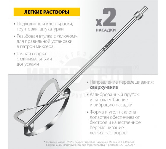 Комплект насадок-миксеров "сверху-вниз" для легких растворов ЗУБР, 2 шт d 220 мм, М27