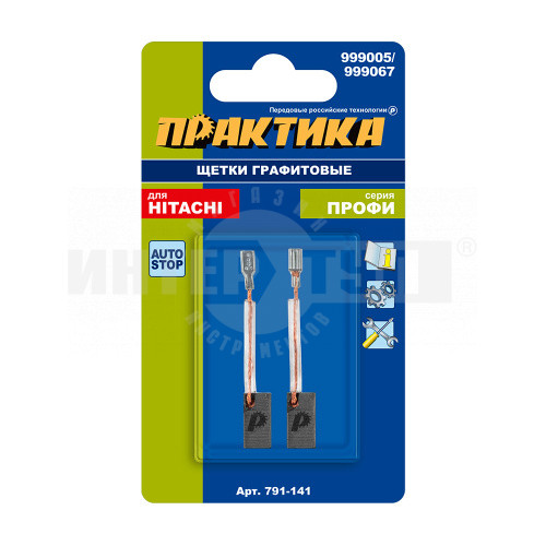 Щетки угольные ПРАКТИКА для HITACHI 999067 6,5 x 7,4 x 14,0 мм автостоп используются в электроинструменте. Подходят для моделей HITACHI: G10SR3, G12SR3, G13SR3