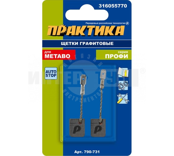 Щетки графитовые для METABO (аналог 316055770) 6x12.5x15 мм, автостоп ПРАКТИКА 790-731 предназначены для установки в коллекторные электродвигатели. Изготовлены из электрографита средней твердости.