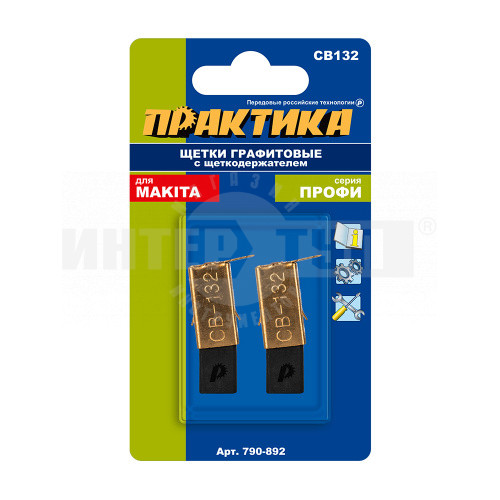 Щетки угольные ПРАКТИКА для Makita CB-132 191972-1 с щеткодержателем 6,0 x 10,0 мм используются в электроинструменте. Подходят для моделей Makita: 1923H, KP0810, KP0810C, UC3020A, UC3520A, UC4020A.