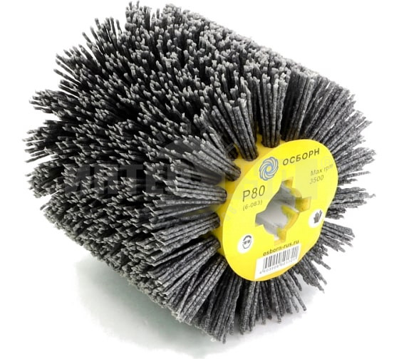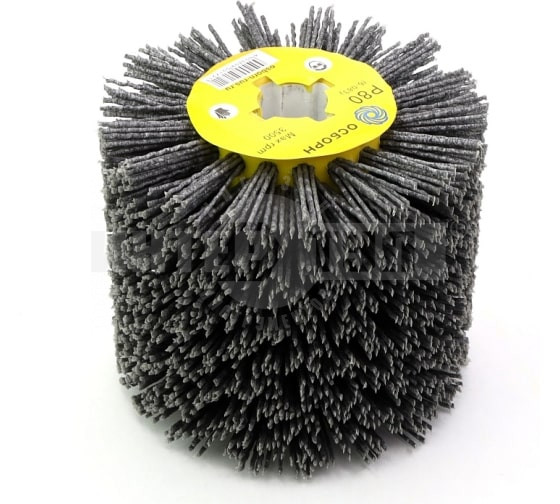 Щетка-валик нейлоновая по дереву 6-083 110 мм, P80 подходит для любых щеточных шлифмашин с валом 19 мм. Щетка с ворсом из полимер-абразива (абразивный нейлон) применяется для текстурирования и шлифования плоских поверхностей из дерева.