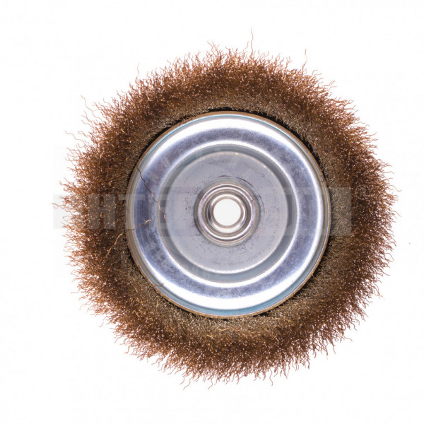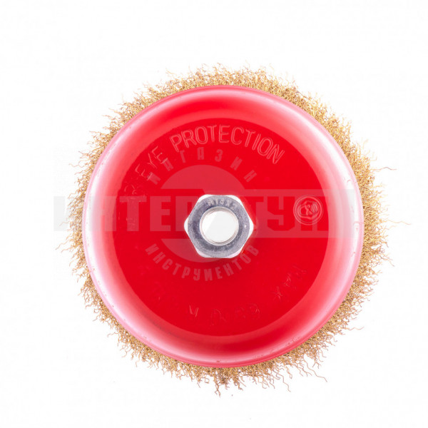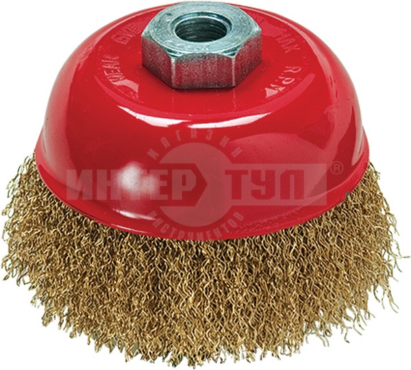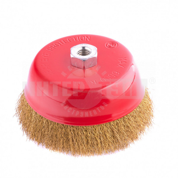 Тип Щетка для УШМ Посадочная резьба М14 Конфигурация Чашка Тип для УШМ чашка Рабочая часть Латунированная витая проволока Диаметр (мм) 150.00 мм Щетина витая металлическая проволока -