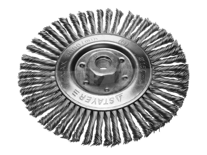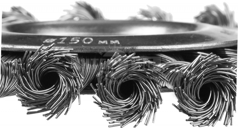 Тип для УШМ плоская Диаметр (мм) 150.00 мм Щетина крученая металлическая проволока (пучек) -