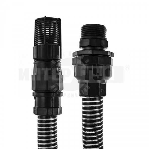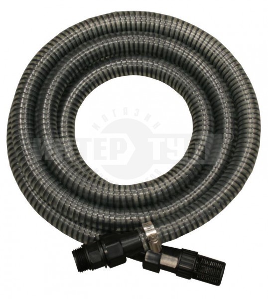 Специальный всасывающий ПВХ шланг с армированием пластиковой спиралью. Оснащён обратным клапаном и резьбовым фитингом 1”. Используется в качестве водозаборного шланга для садовых поверхностных насосов и автоматических насосных станций. Фитинги и обратный клапан изготовлены из пластика и латуни, оснащены фильтром грубой очистки.