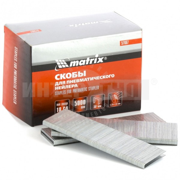Скобы 18GA для пнев. степлера 1,25х1,0мм длина 38 мм ширина 5,7 мм, 5000 шт// MATRIX