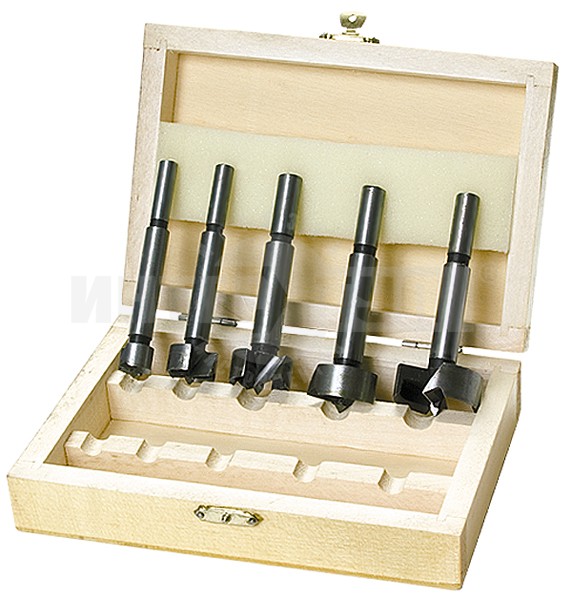 Изготовлены из углеродистой стали. Твердость режущих кромок 40–43 HRC. Предназначено для точного высверливания глухих (несквозных) отверстий большого диаметра (10, 15, 20, 25 и 35 мм) на небольшую глубину. Используется при установке мебельных петель в дереве, ламинате и ДСП.