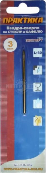 Сверло стекл/кер ц/х _3х60мм Эксперт Квадро Практика