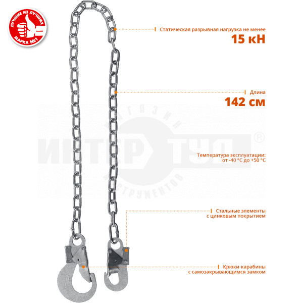 Строп одноплечный ЗУБР 11588, применяется как средство защиты от падения с высоты.